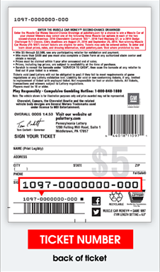 Scratch your Muscle Car Money ticket. If it is a non-winning ticket, simply locate the unique ENTRY NUMBER (front of ticket) and TICKET NUMBER (back of ticket) and submit them at the ENTER NOW page.